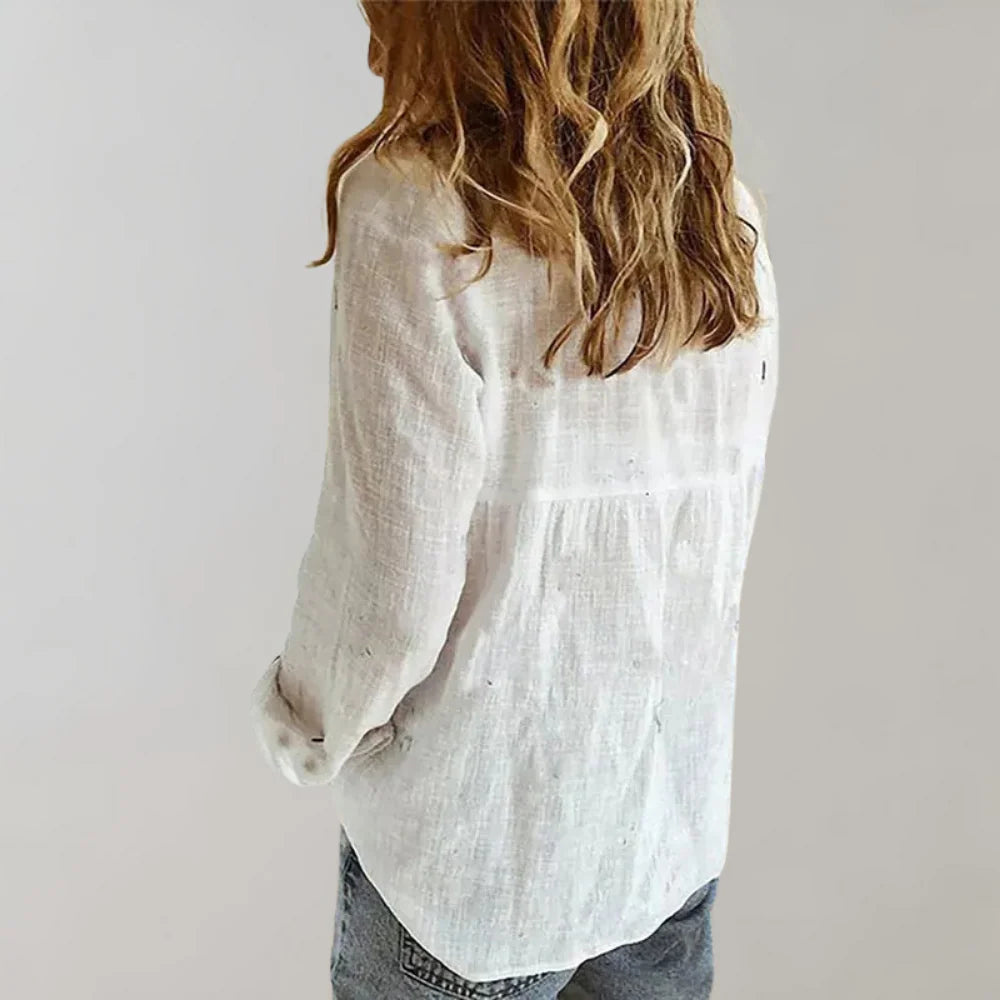 • Klassische Hemdblusen-Details: mit Kragen und durchgehender Knopfleiste