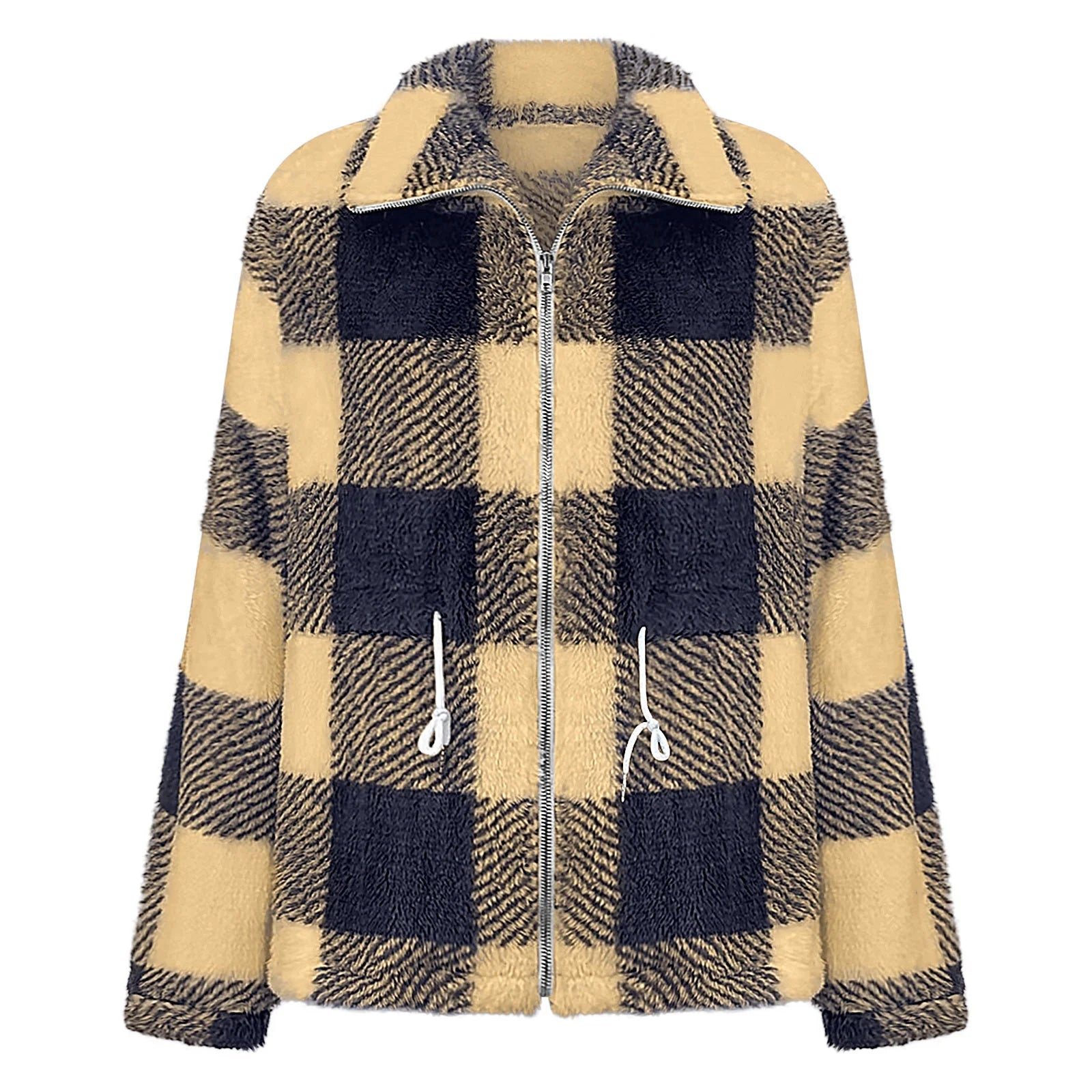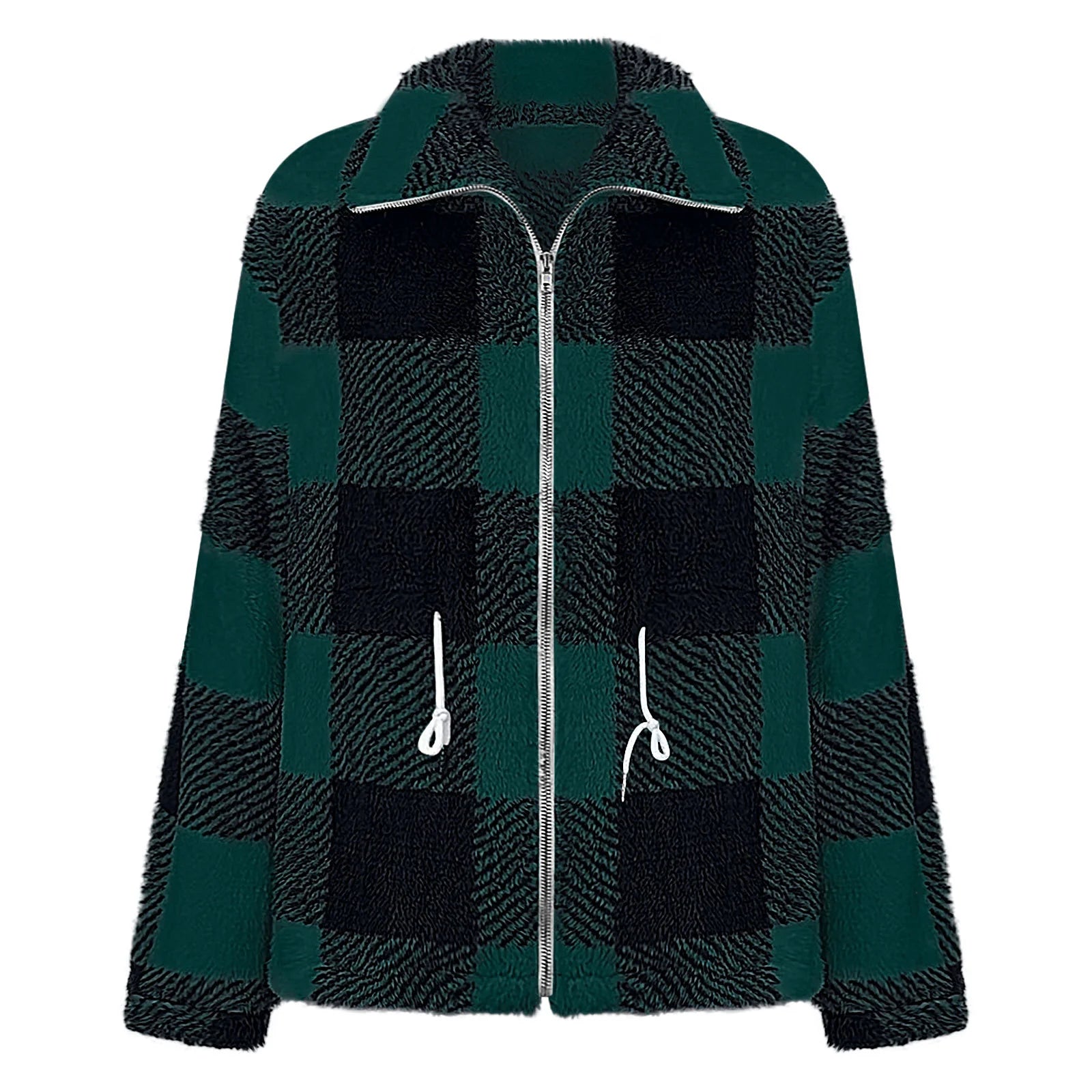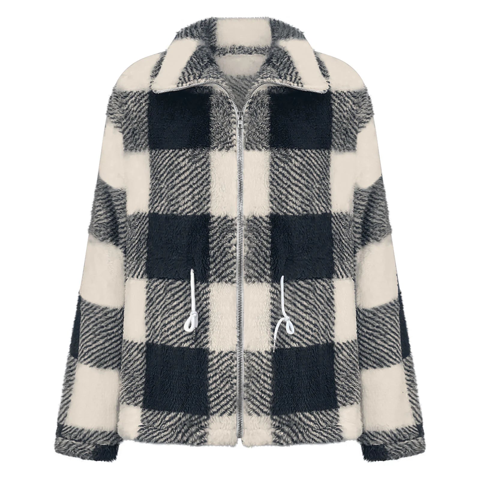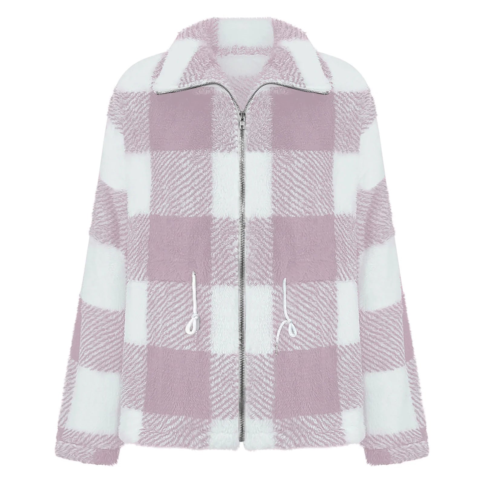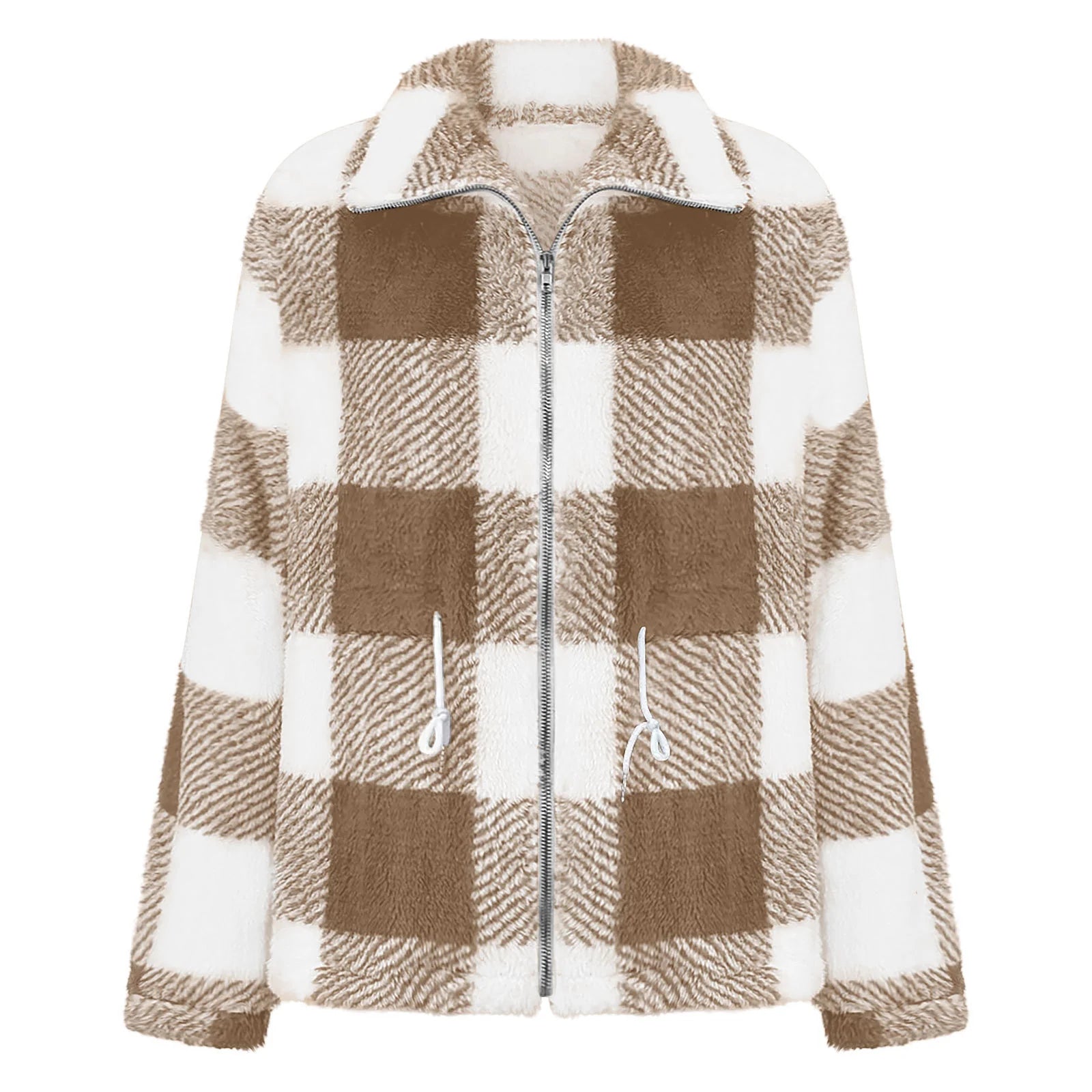 Damen-Karierte Plüschjacke – Mit Reißverschluss, Gemütlich & Trendig