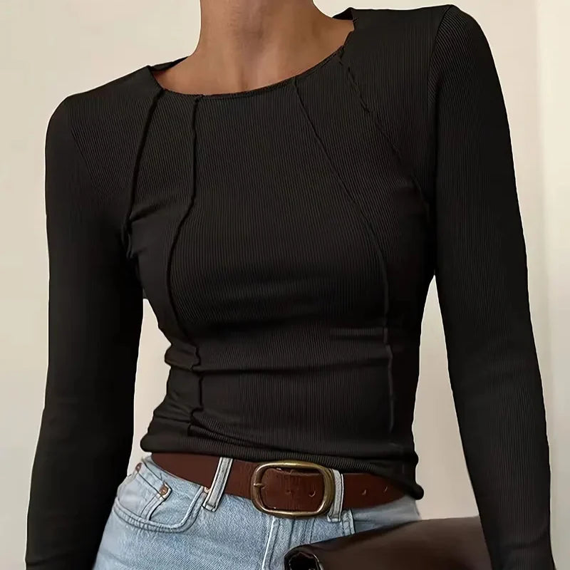 Verleihen Sie Ihren Basics mit diesem strukturierten Stricktop, das mühelos Stil und Komfort für jeden Tag vereint.