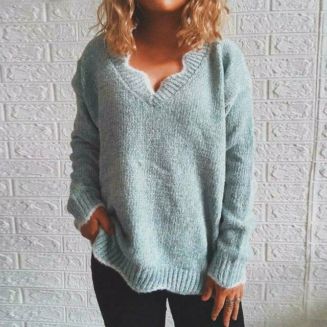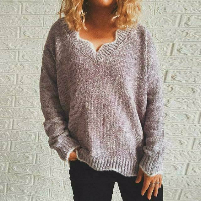 Damen Pullover – V-Ausschnitt im Unistil, Sanft & Bequem
