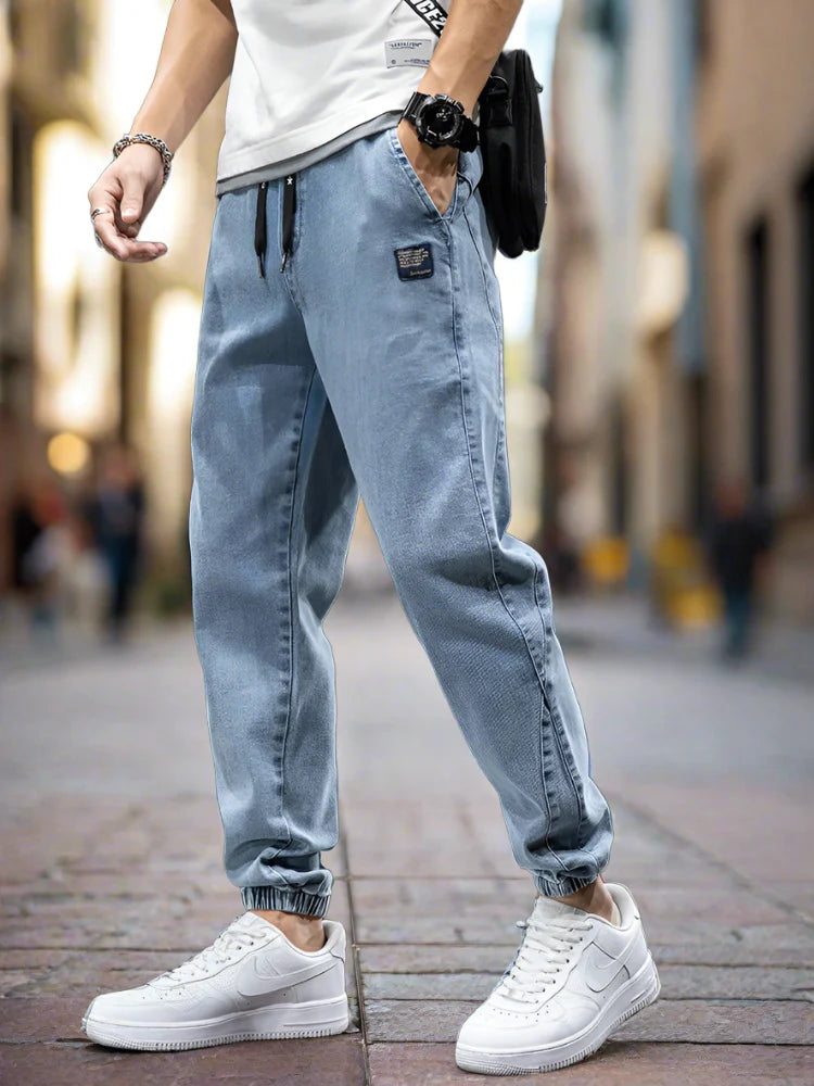Gefertigt aus dehnbarem Baumwollmischgewebe vereinen diese Herren-Denim-Jogginghosen die entspannte Passform von Loungewear mit dem gepflegten Look klassischer Jeans. Dank ihres vielseitigen Designs lassen sie sich mühelos von Freizeitaktivitäten bis hin zum Alltag tragen.
