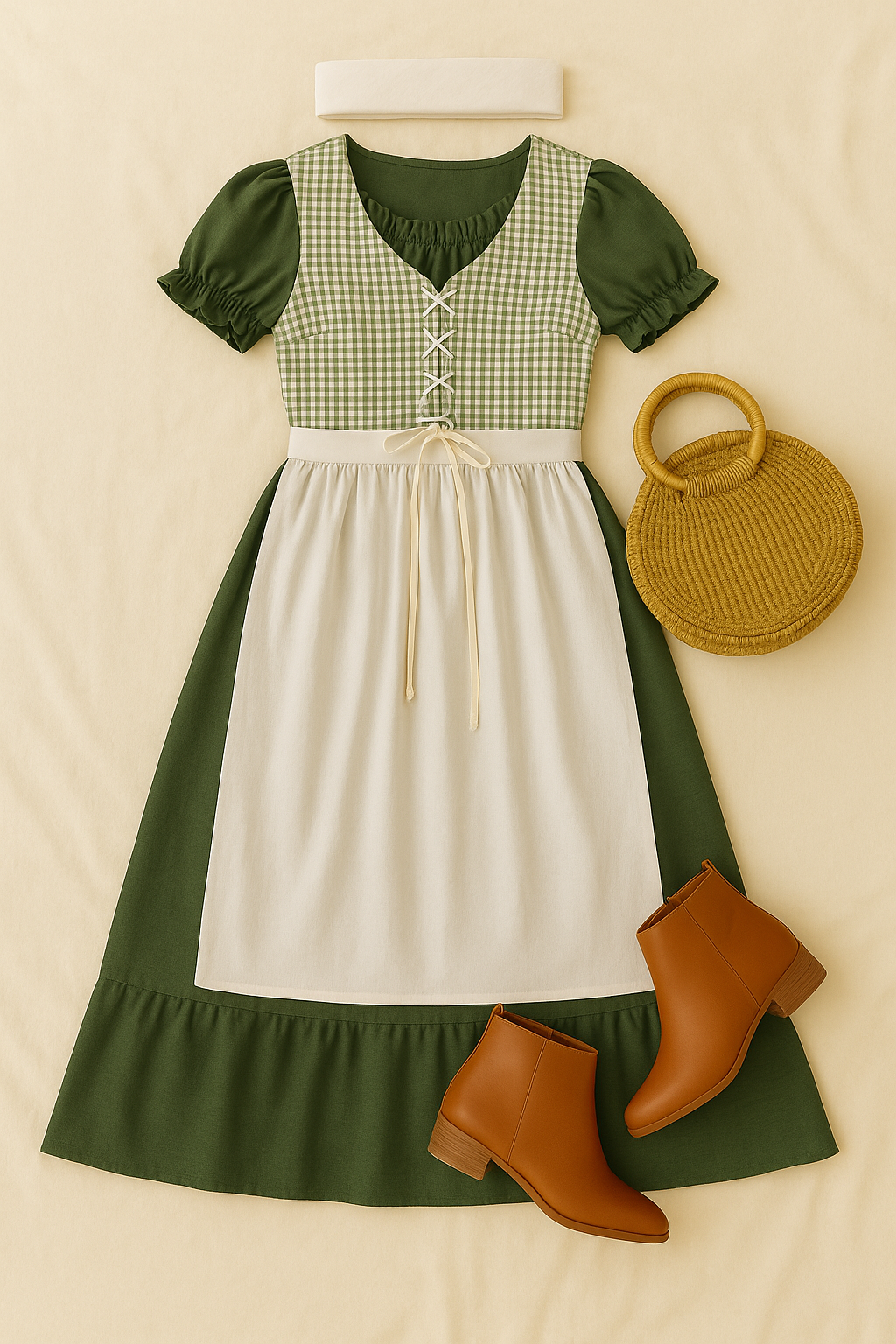 • Kontrastreiche Details: Abgesetztes Mieder und Schürze betonen den traditionellen Charakter.