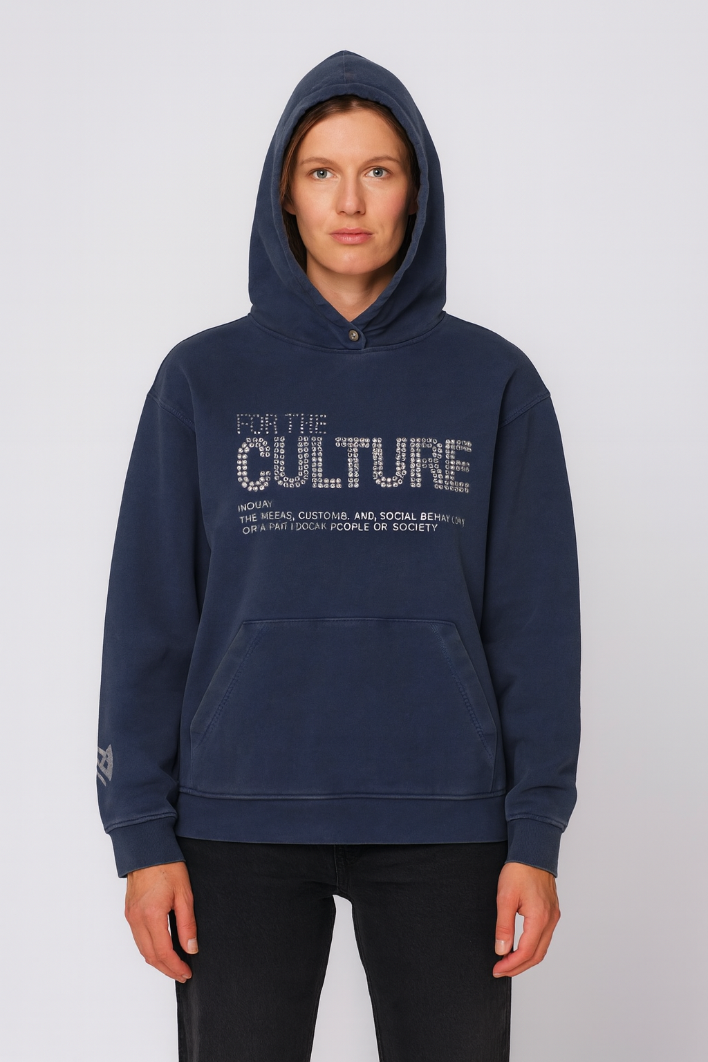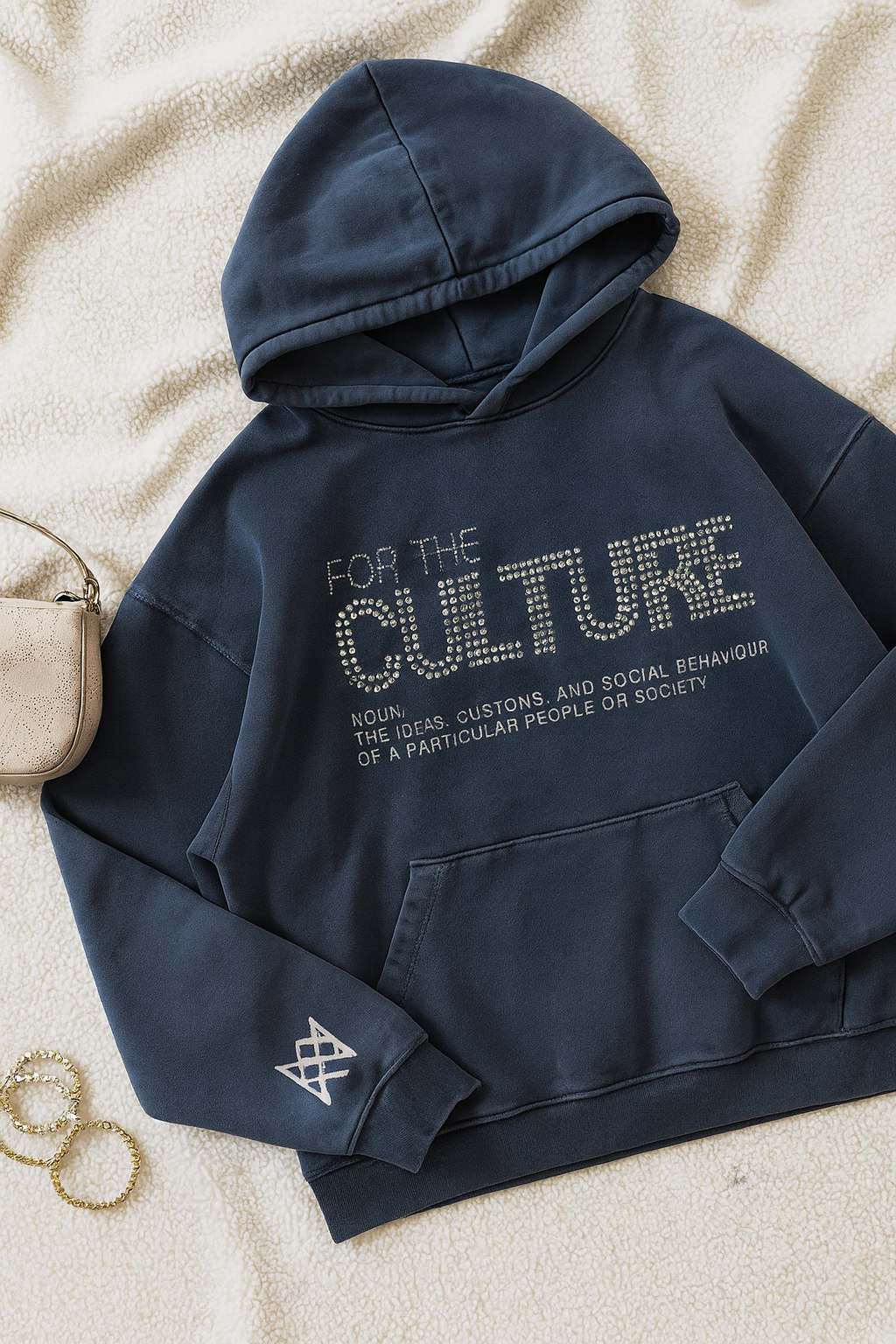 Dieser dunkelblaue Hoodie vereint modernes Design mit unvergleichlichem Komfort. Der auffällige Schriftzug „FOR THE CULTURE“ und die schimmernden Details verleihen ihm einen trendigen Look, der perfekt für den Alltag oder entspannte Wochenenden geeignet ist. Hergestellt aus weichem Baumwollstoff bietet er eine lockere Passform, die Bewegungsfreiheit und Gemütlichkeit garantiert.