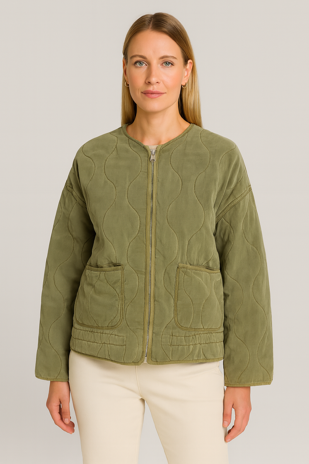 Dieses taillierte Damenjacke vereint stilvolle Eleganz mit praktischer Funktionalität. Die quiltversteppte Oberfläche sorgt für eine ansprechende Struktur, während die figurbetonte Passform Ihre Silhouette vorteilhaft betont. Ideal für die Übergangszeit, lässt sich dieses Jacke sowohl in der Freizeit als auch zu eleganten Anlässen tragen.