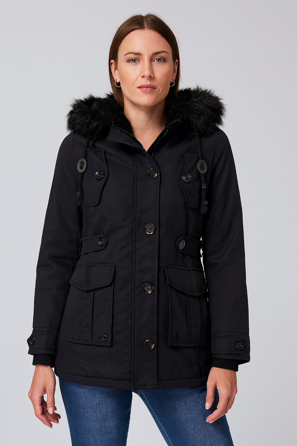 Dank der gefütterten Verarbeitung und der praktischen Kapuze eignet sich die Jacke ideal für kalte Tage in Herbst und Winter. Taschen und Reißverschluss unterstreichen die Alltagstauglichkeit, während die lockere Silhouette für einen entspannten Auftritt sorgt – perfekt für Freizeit, Uni oder City-Looks.