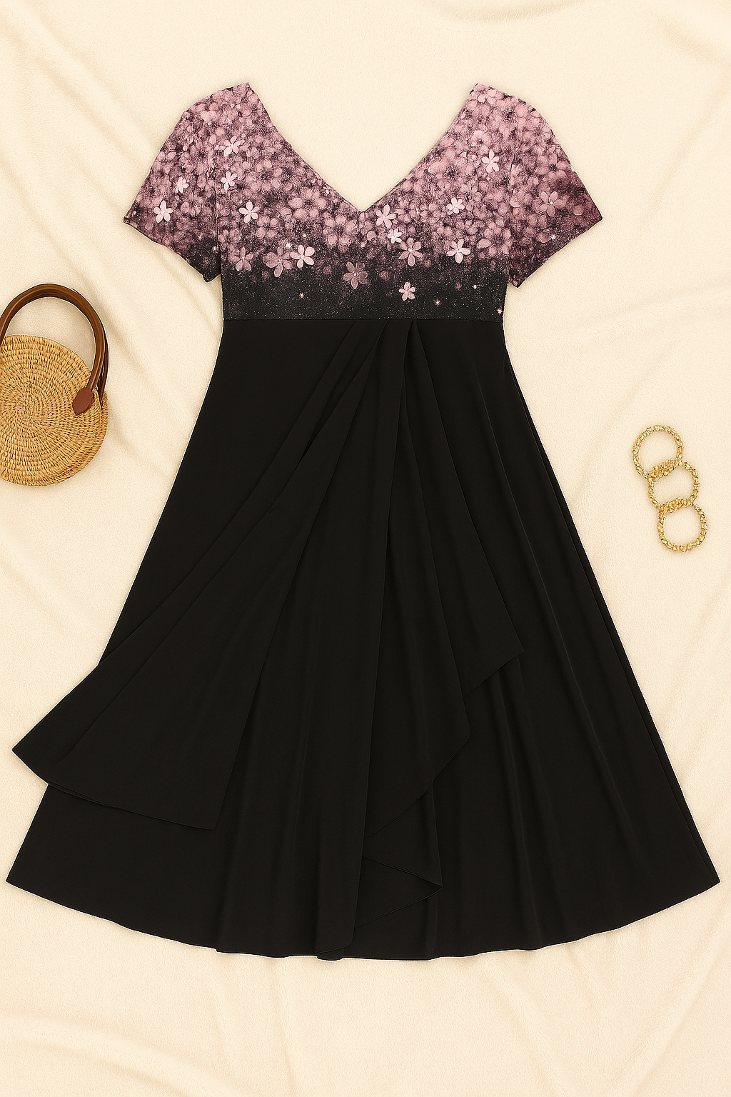 Dieses Damenkleid mit verspieltem Print bringt Leichtigkeit und Stil in deine Garderobe. Der schmeichelhafte V-Ausschnitt und die kurzen Ärmel sorgen für ein angenehmes Tragegefühl, während der figurbetonte Schnitt deine Silhouette betont. Das fließende, leichte Material macht das Kleid zum perfekten Begleiter für sonnige Tage.