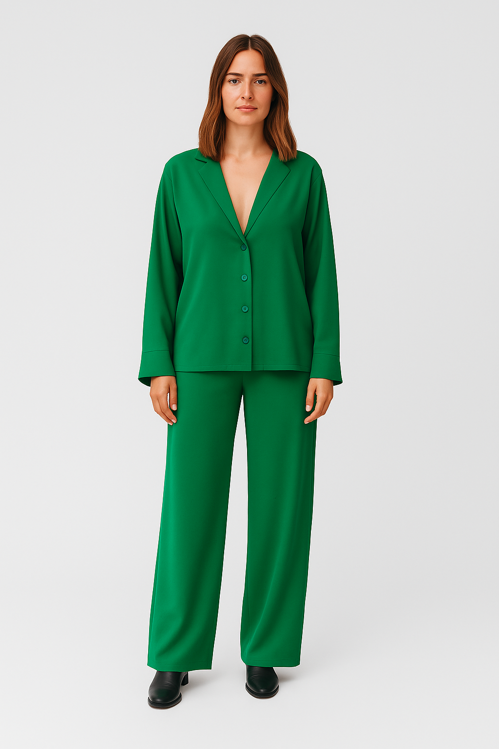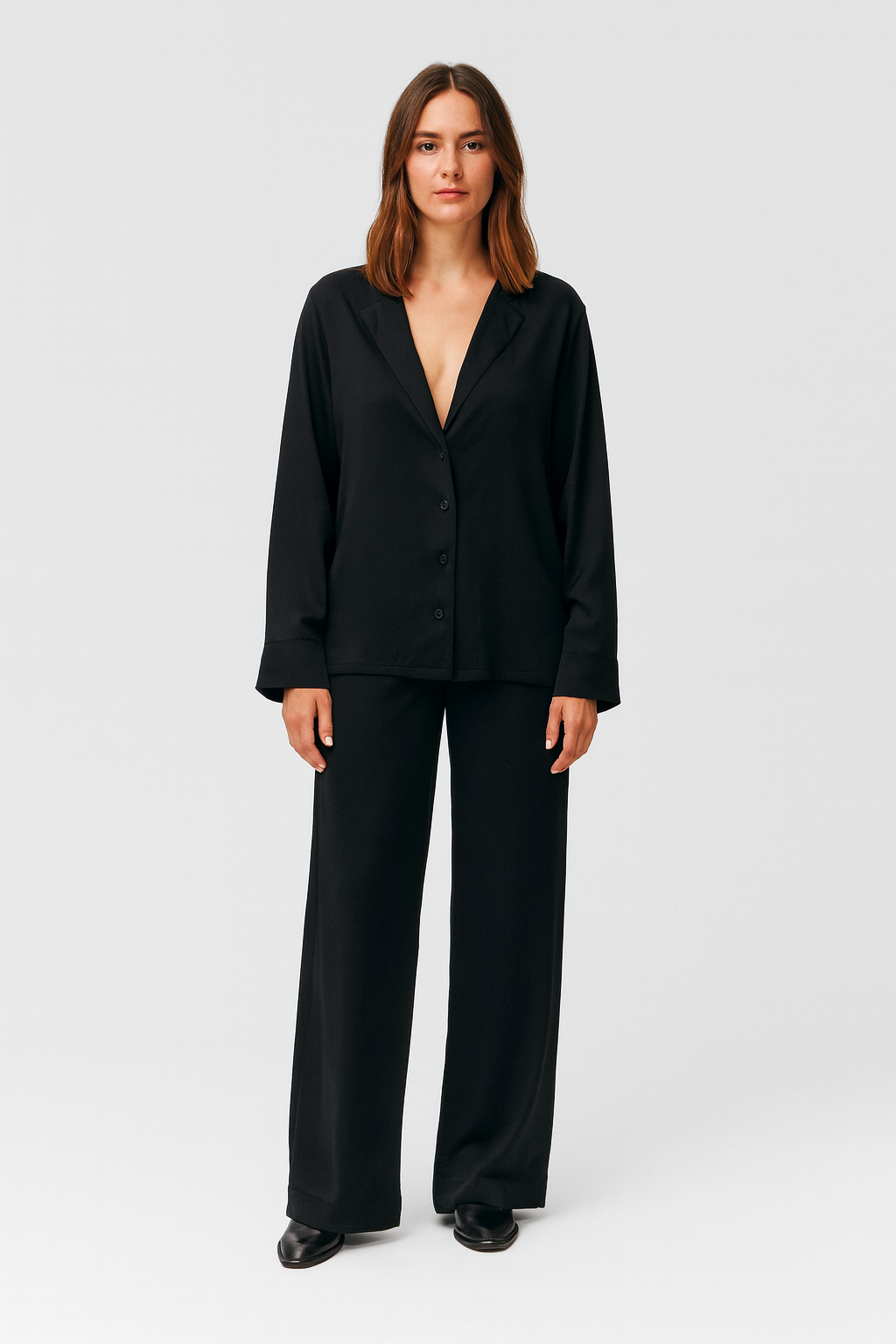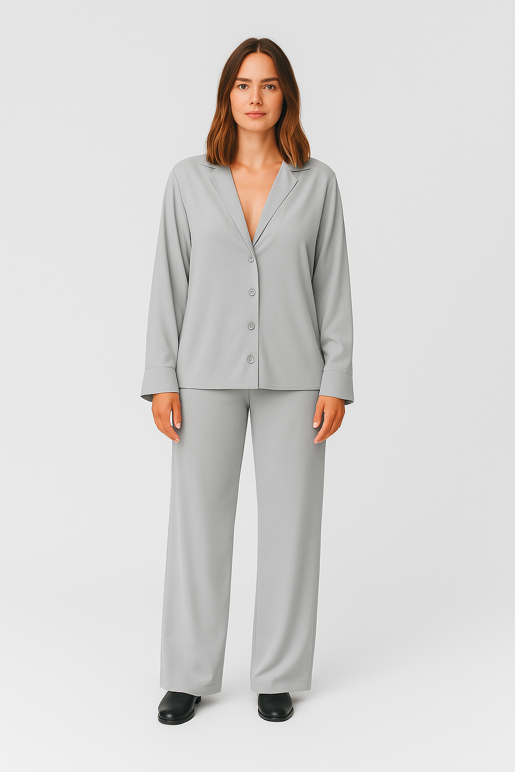 Das zweiteilige Loungewear-Set Elisa vereint stilvolle Eleganz mit unvergleichlichem Komfort. Hergestellt aus hochwertigem Satin, bietet die locker geschnittene Hemdbluse mit tiefem V-Ausschnitt und die weite Hose mit elastischem Bund ein angenehmes Tragegefühl. Ideal für entspannte Stunden zu Hause, im Büro oder als modisches Statement in der Stadt.