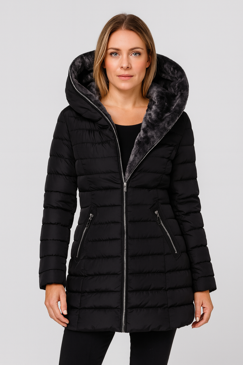 Wählen Sie diese Damenjacke für stilvolle Wärme und Komfort in der kalten Jahreszeit. Sie ist die perfekte Ergänzung für Ihre Garderobe und ideal für jeden Anlass.