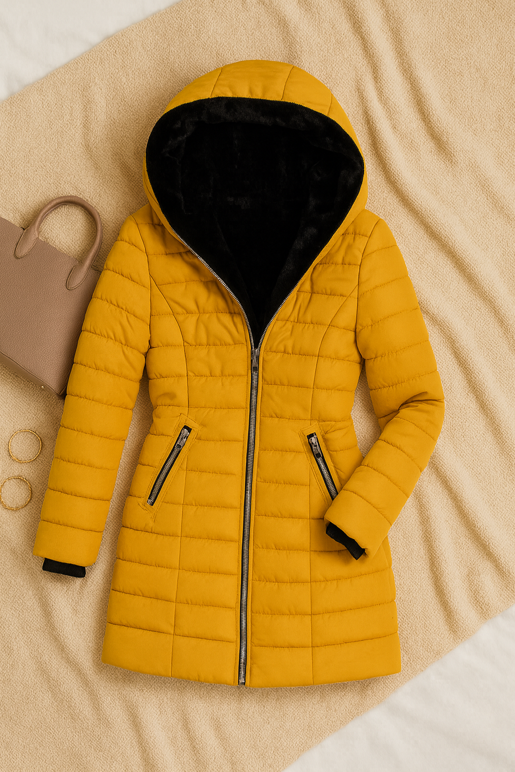 Diese lange, gepolsterte Damenjacke mit Reißverschluss vereint modernen Stil und hervorragenden Kälteschutz. Die isolierende Fütterung sorgt für angenehme Wärme, während die praktische Kapuze zusätzlichen Schutz bei windigem Wetter bietet. Ideal für den Herbst und Winter, ob in der Stadt oder bei Outdoor-Aktivitäten.