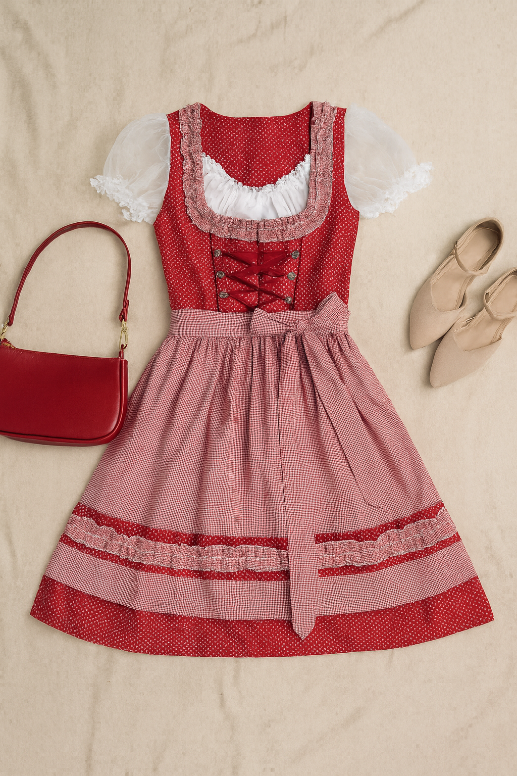 • Komplettes Ensemble: Enthält Kleid, Bluse und Schürze für ein vollständiges Outfit.