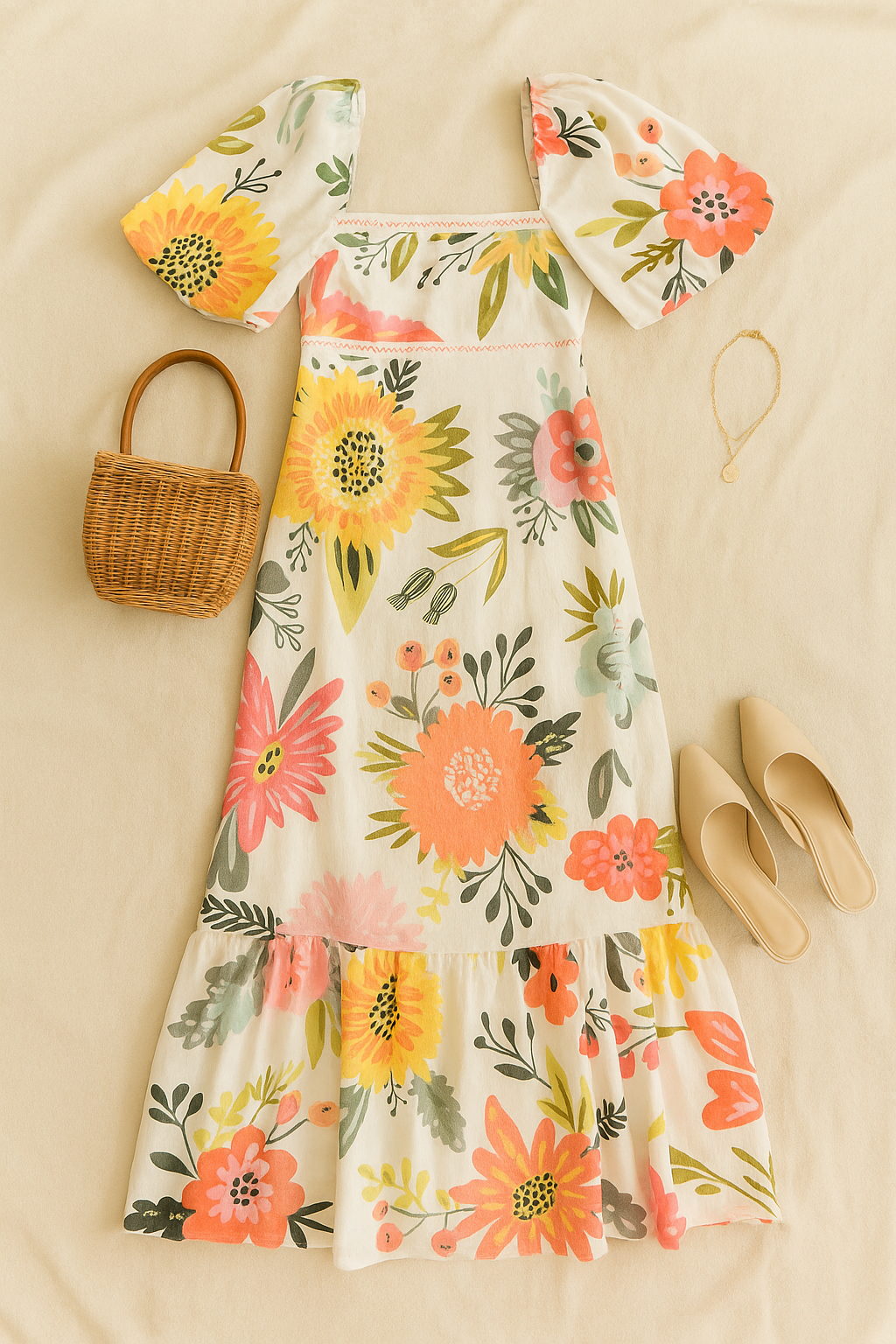 Damenkleid – Maxilänge mit Blumenprint, romantisch & luftig