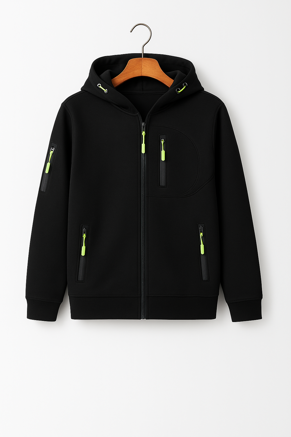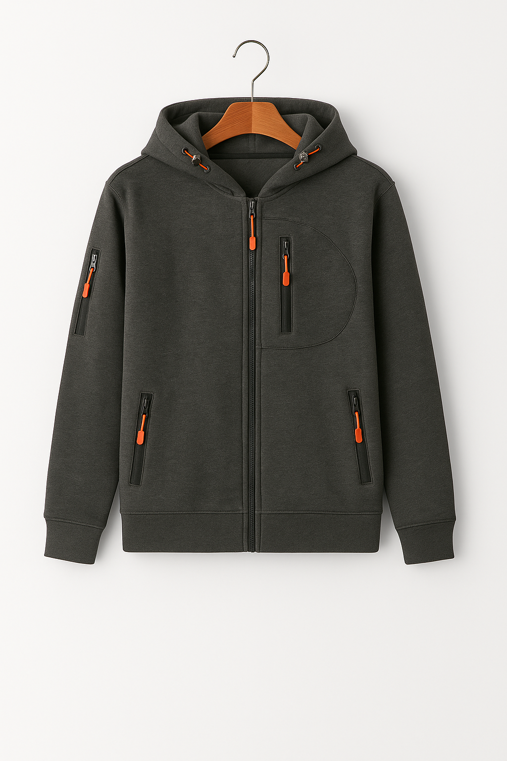 • Sportliches Design: Moderner Look mit Kapuze & Reißverschluss