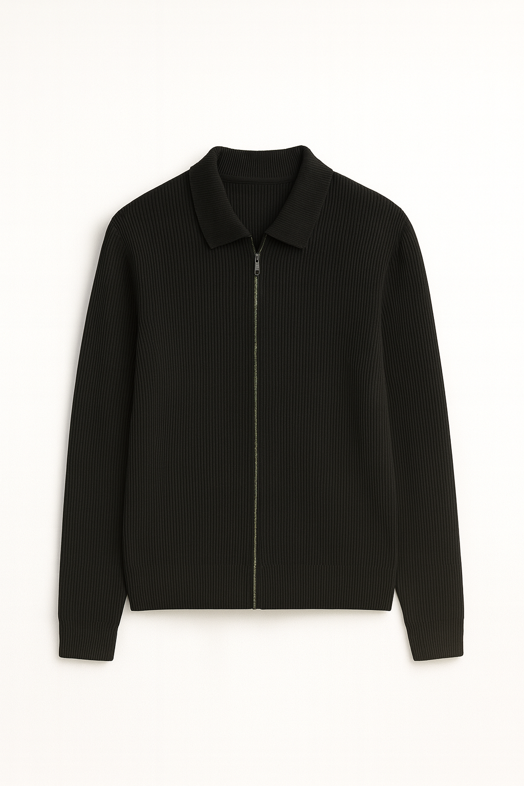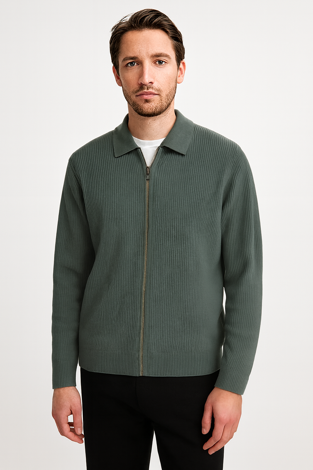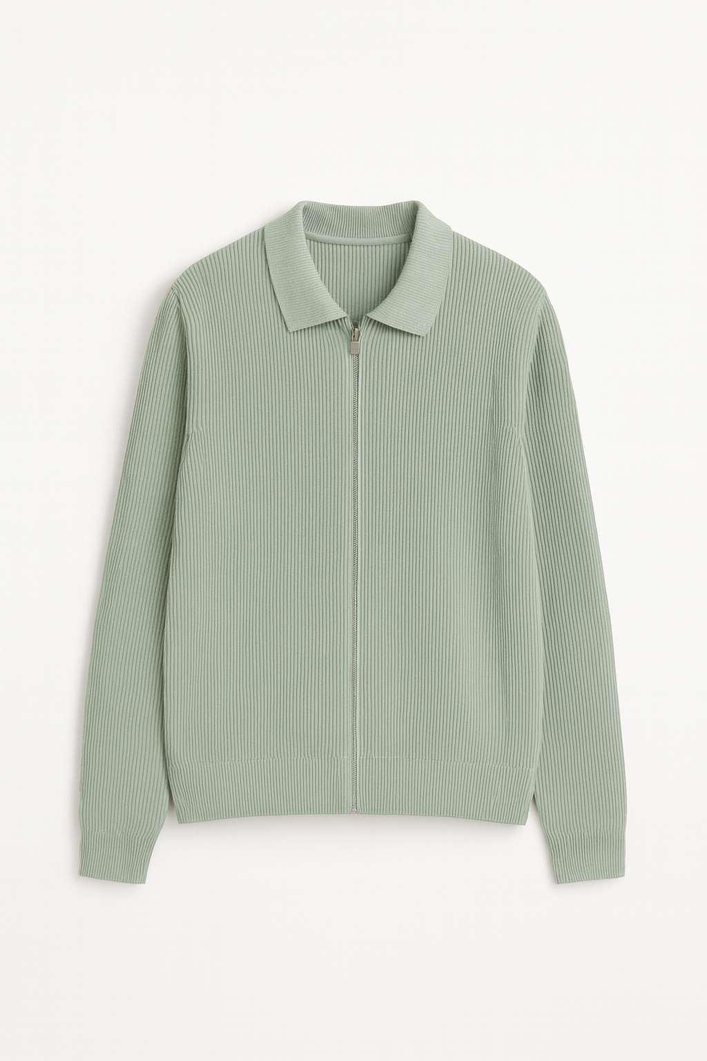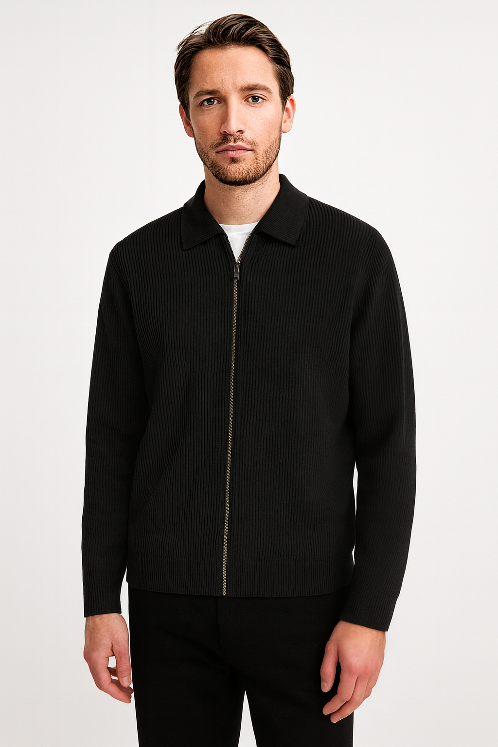 Diese Herrenjacke in Bomber-Stil vereint minimalistisches Design mit gehobenem Tragekomfort. Gefertigt aus hochwertigem Feinstrick, schmiegt sie sich weich an den Körper und bietet durch den elastischen Bund sowie die dezenten Rippabschlüsse an Ärmeln und Saum eine perfekte Passform. Der durchgehende Reißverschluss und der klassische Kragen verleihen ihr einen zeitlosen Look – ideal für den Alltag, das Büro oder stilvolle Wochenend-Outfits. Die klare, cremefarbene Optik sorgt für einen eleganten Auftritt bei jedem Anlass.