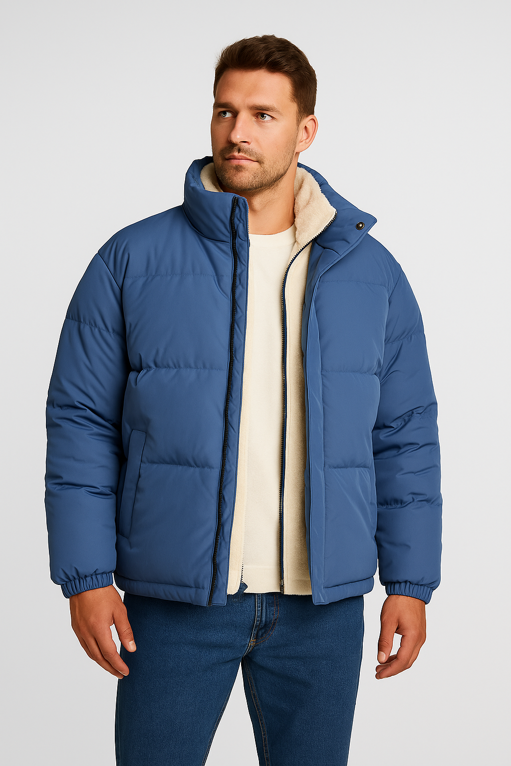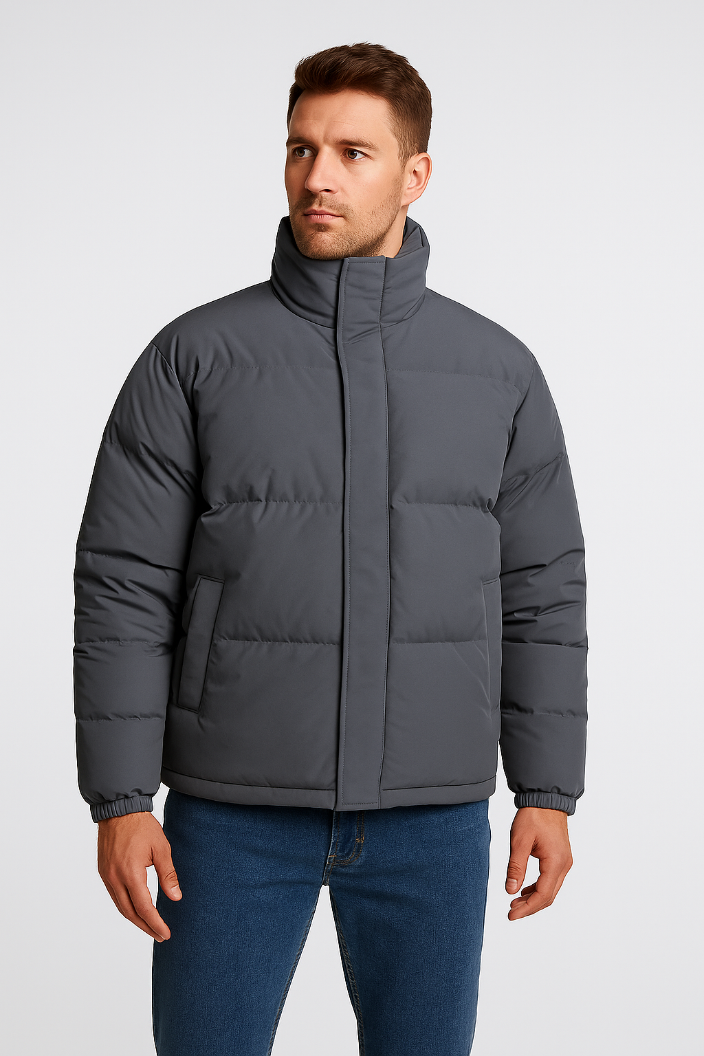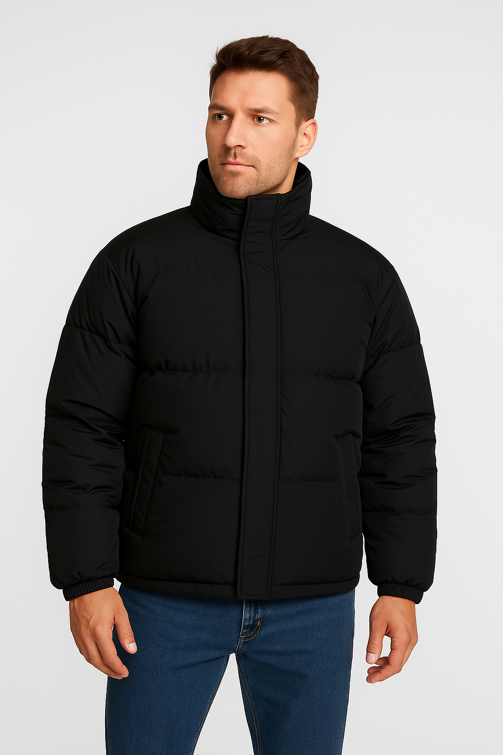 Diese Herren Mock-Neck Puffer Jacke vereint modernen Stil mit hervorragendem Schutz vor Kälte. Das gesteppte Design sorgt für eine ansprechende Optik, während der hohe Kragen zusätzlichen Windschutz bietet. Ideal für den Herbst und Winter, ob in der Stadt oder bei Outdoor-Aktivitäten.